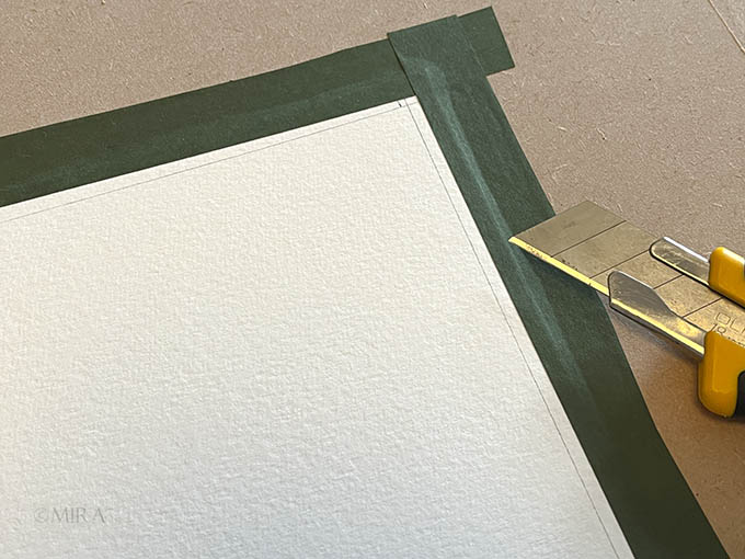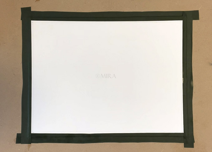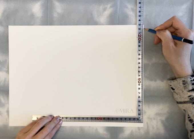 水彩紙の表側に、仕上がりサイズの線を鉛筆で薄く描いておきます。