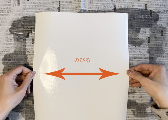 その時点で紙を縦横にそっと引っ張り、伸びる方向を確認します。