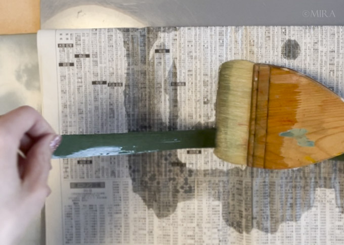 ただ、裏側にしか水を引かないと紙がクルンと巻いてしまって作業がしにくいことがあります。