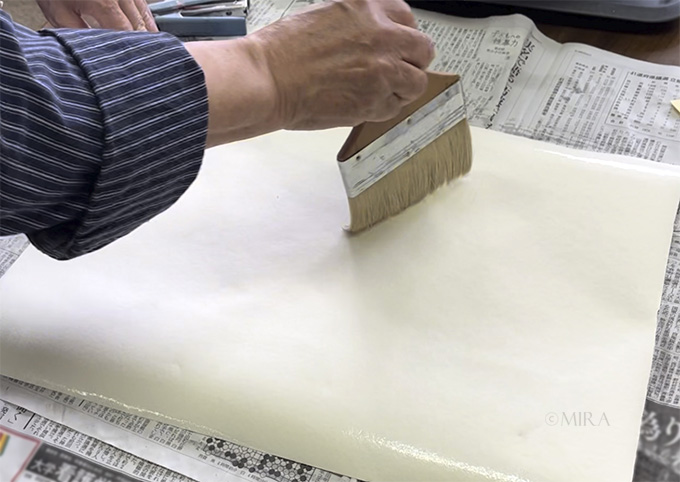 紙の表、裏に刷毛でたっぷり水を引きます。