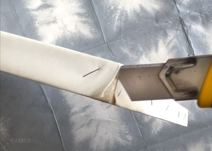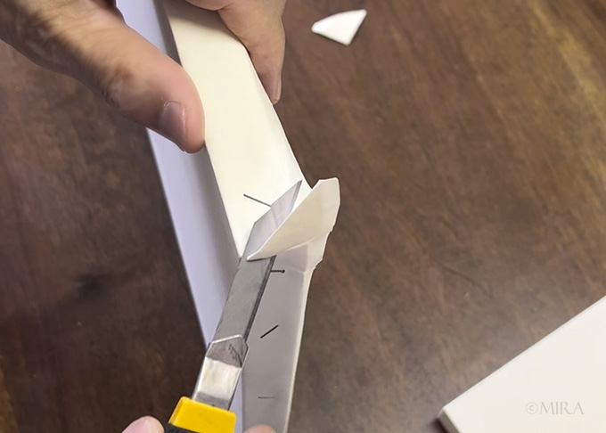 ハサミでも良いですがカッターナイフの方が綺麗に仕上がり、作業もしやすいです。