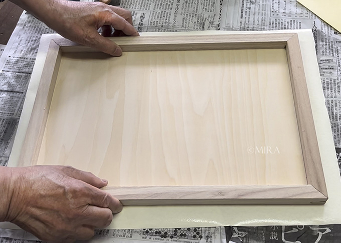 このとき少したるんでいても、紙が乾けばピンと張ります。