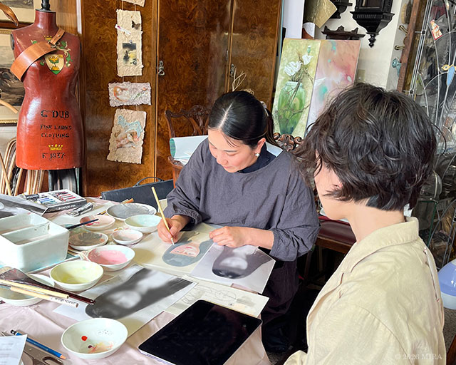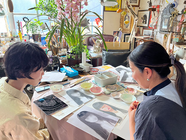 私の指導がメインですが、アトリエではデザイナーであり、プロの絵描きとして長年日本各地の百貨店で個展を開催されてきた紀伊川宗圓先生からのアドバイスも受けられます。