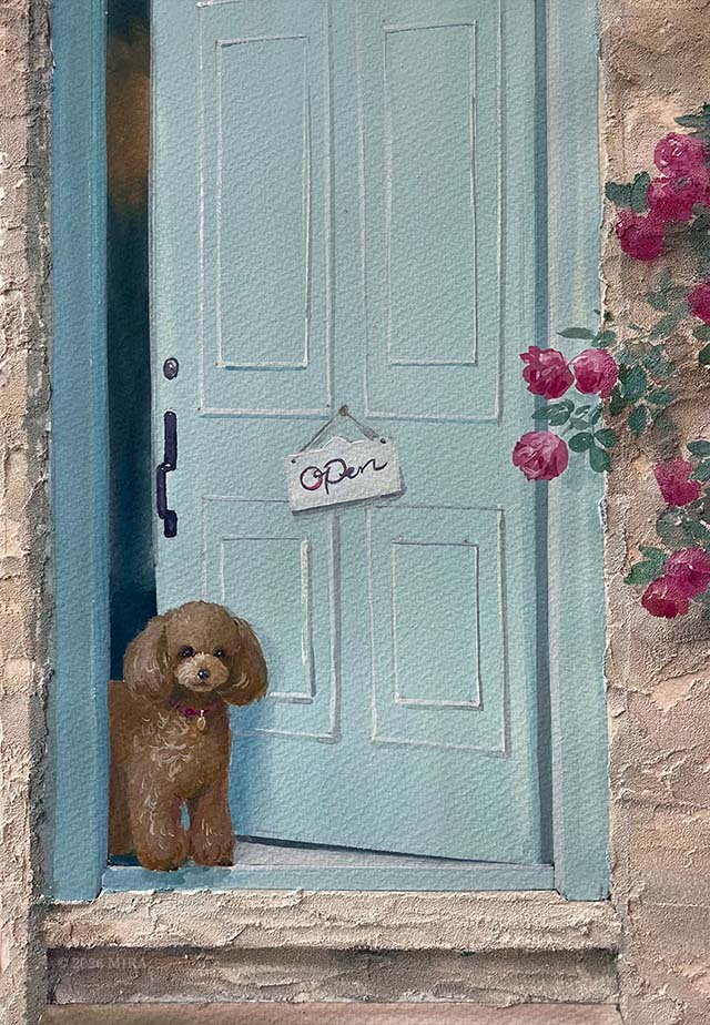 アトリエでは不透明水彩(ガッシュで)指導していますが、アクリル画や水墨画、色鉛筆画など他の画材やデジタルで描かれた自由制作作品にアドバイスも行っています。