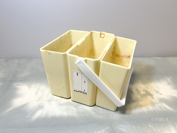 良いところばかりみたいですが、一つ一つのエリアが大きくないというのが難点で、私は刷毛を洗いにくい…というか、刷毛が入らないので黄色いバケツを卒業しました。