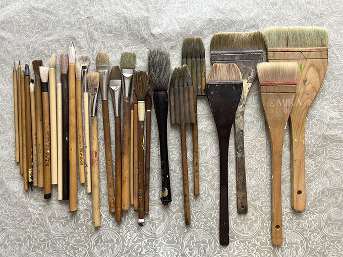 日本画でなくても、水彩画でもポスターカラーで描くときも、日本画の筆を使っています。