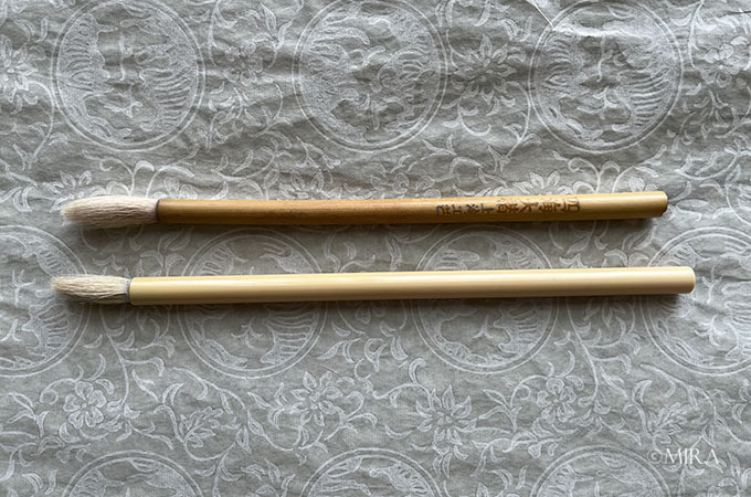 下の刷毛のサイズは二寸(幅約5.9㎝)、上の刷毛が三寸(幅約9cm)です。