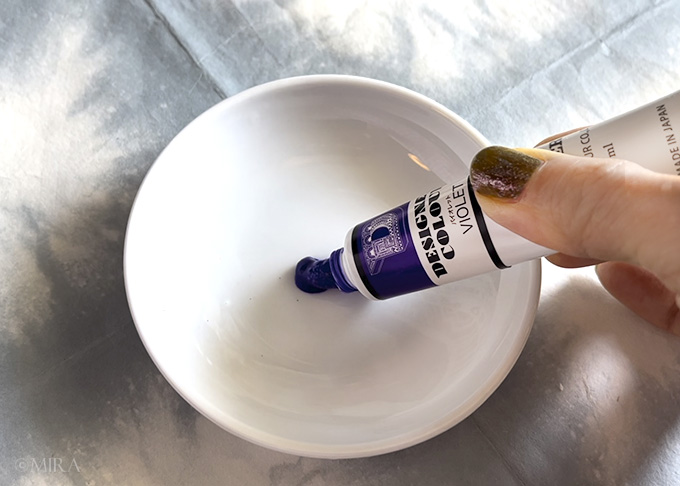 固めた絵の具を水で溶かして描くのでは薄くなってしまうため、不透明水彩らしい濃度の濃い描き方をする場合、その都度使う分をチューブからパレットや絵皿に出して使います。