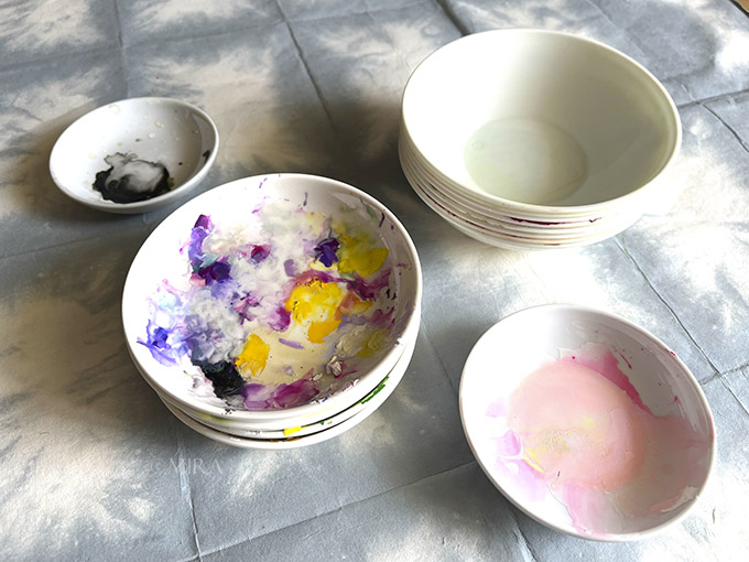 私は1枚の絵が完成するまでは絵皿は洗わないようにしています