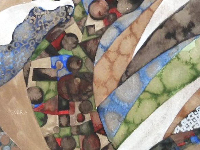 ポスターカラーは「ベタ塗りの平面的な描き方をする絵の具」と思っている方も多く、この画像のような作品を「ポスターカラーで描いた」と言うと驚かれることも珍しくありません。