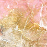同じレモンイエローの不透明水彩絵の具にメディウムを混ぜて透明水彩絵の具にしたものを、不透明水彩のマゼンタに塗り重ねるとこうなります。