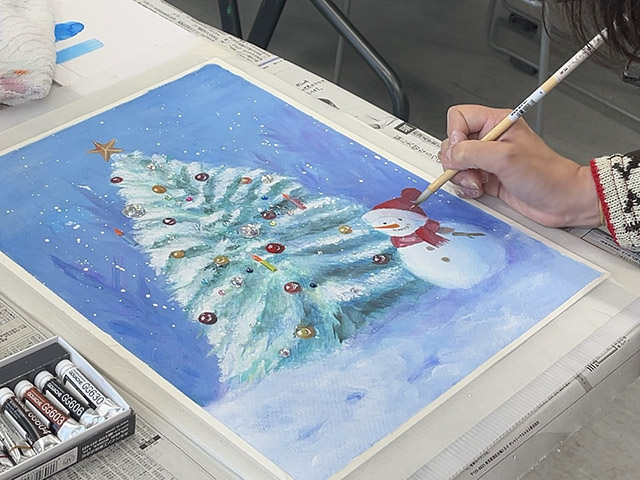 教室で使用する画材は、プロとして作品を発表したり販売するのにも使える絵の具です。