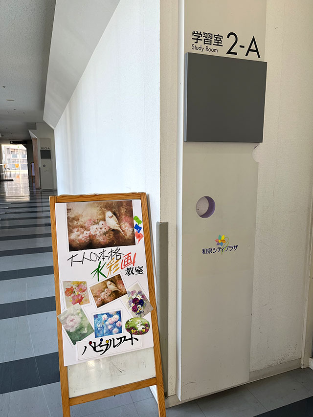 パピプルアートでは「生徒さんに自由に描いていただきアドバイスをする」というスタイルの絵画教室ではないため、レッスンの進行に影響が出ないよう、予約制となっており、ご見学は通常のレッスン(13:15~15:45)が終わる少し前の15:30頃にご入室いただき教室をご覧いただいた後、ご案内や簡単な不透明水彩の体験を無料で受けていただけます。(30~40分程度の予定)